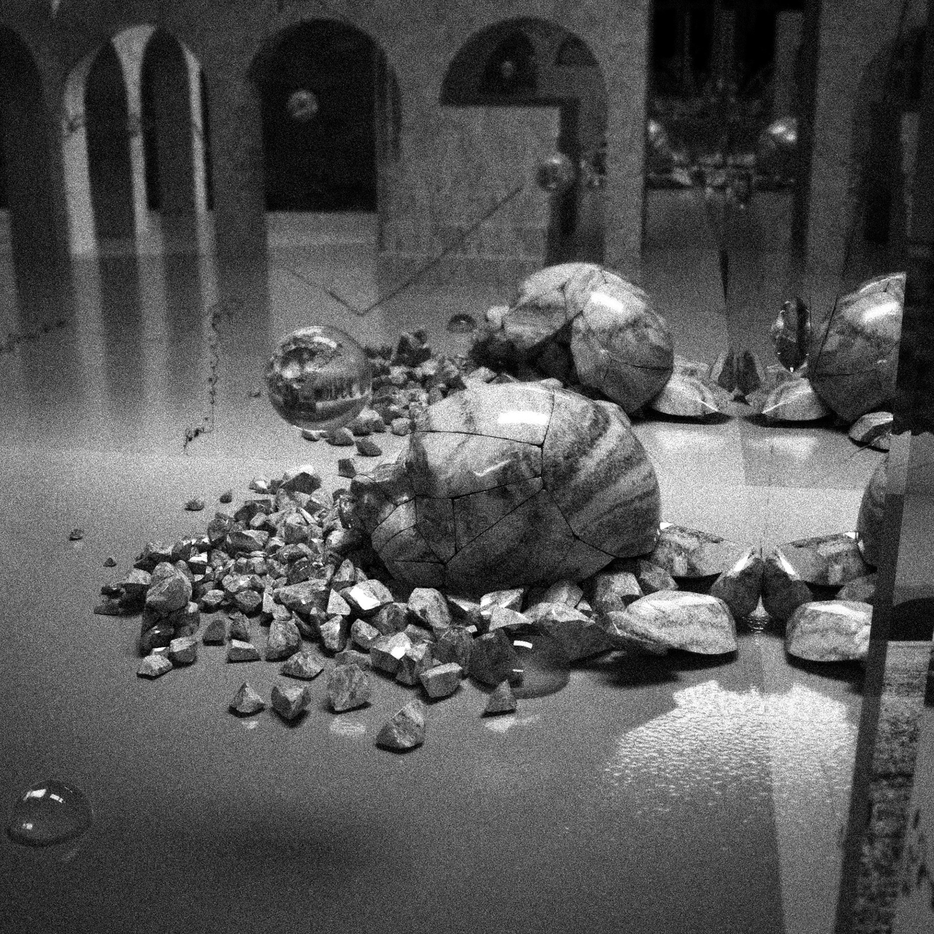 "Low Tide" is my rendering for Vladimir Petkovic's stone head. I had some of Susanna Clarke's new "Piranesi" book in my mind, and also the etchings of the real Giovanni Battista in my mind. Here you can see an image of the great halls and its arches reflected on mirrored walls, with the head of one giant statue shattered on the sands. The result is a bit melancholic, and an image of solitude perhaps. I applied the effect of old Black and White photos to it, and might as well post the original coloured images. Thanks Vladimir, for such a lovely and romantic prop!