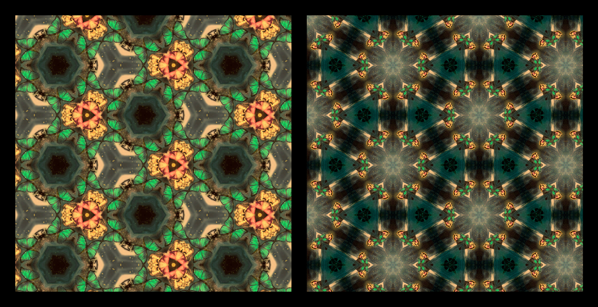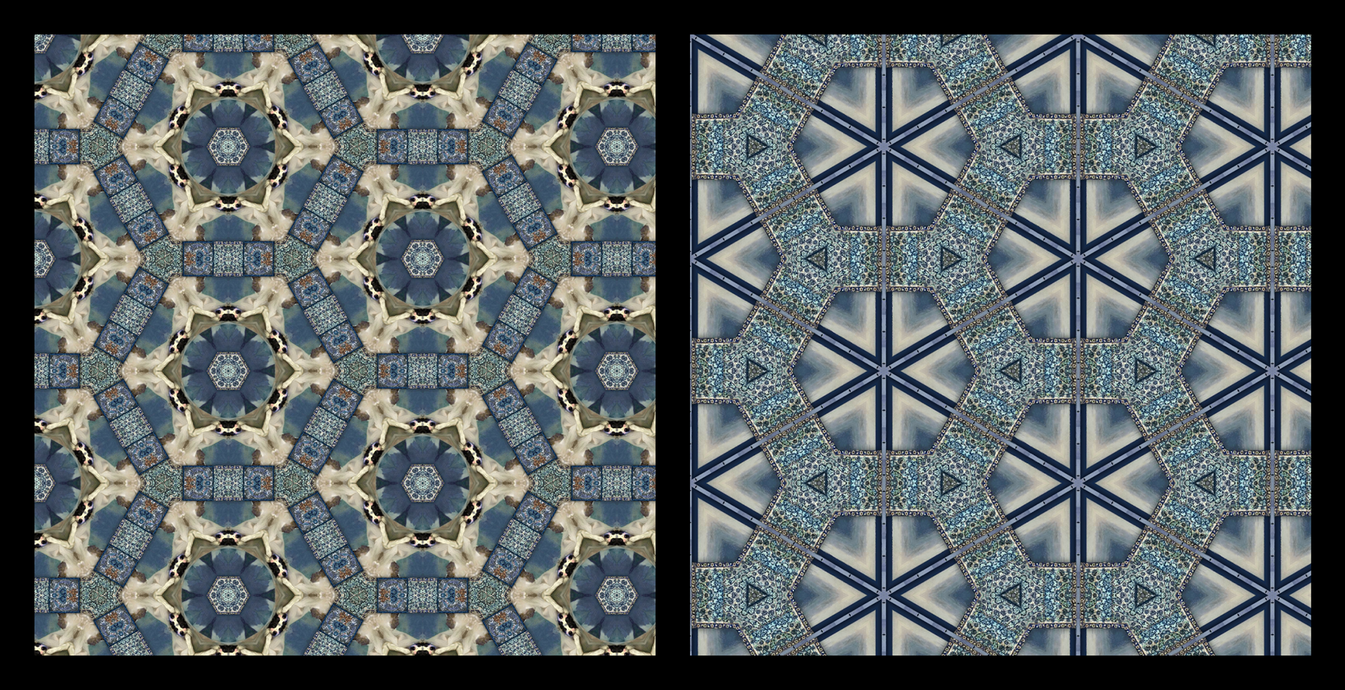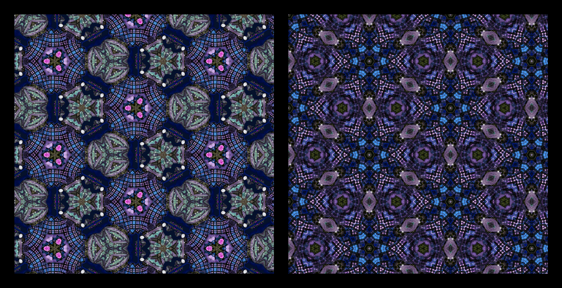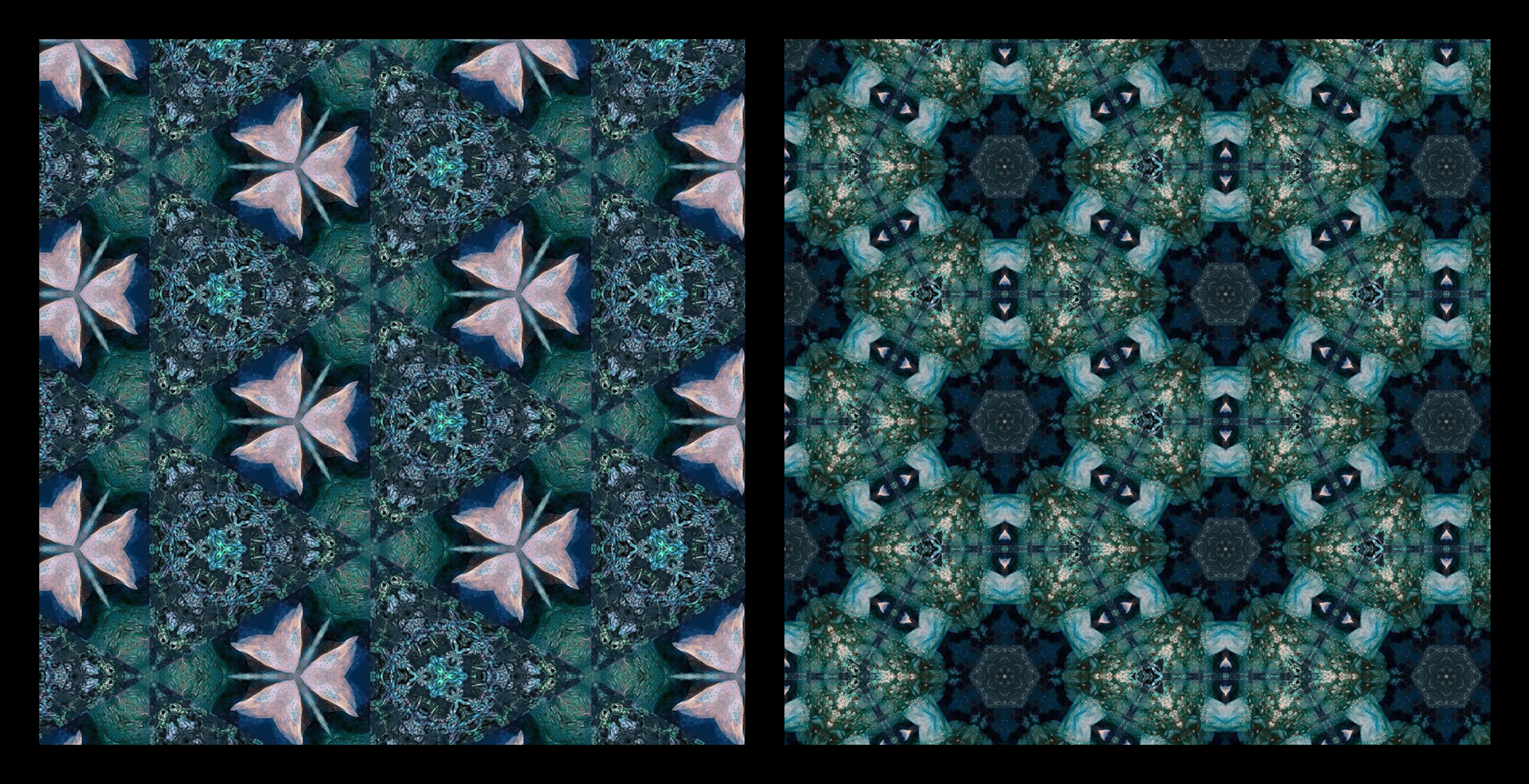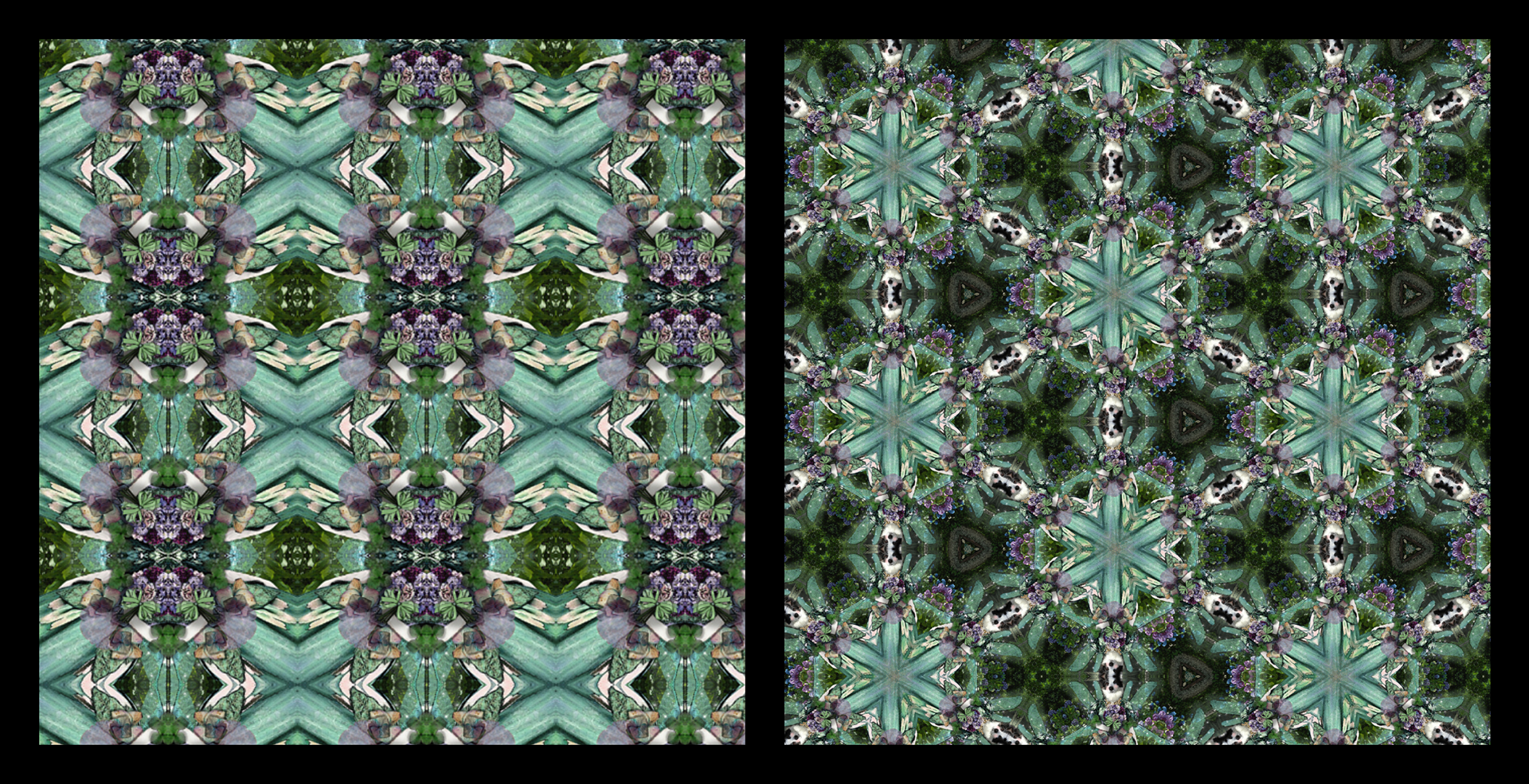 In this little project, I have used Adobe Capture to modify and distort some of my original collages, creating a series of abstract repeating patterns. See also Mirrors for the first installment.