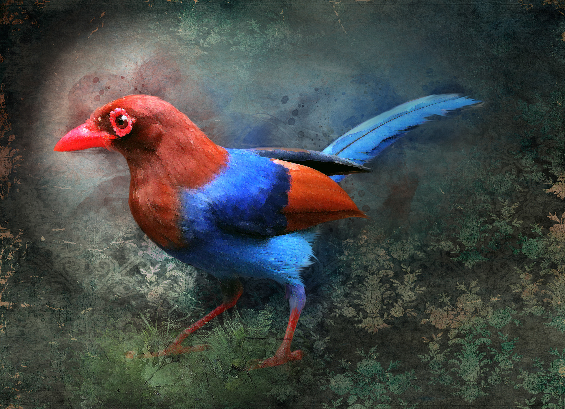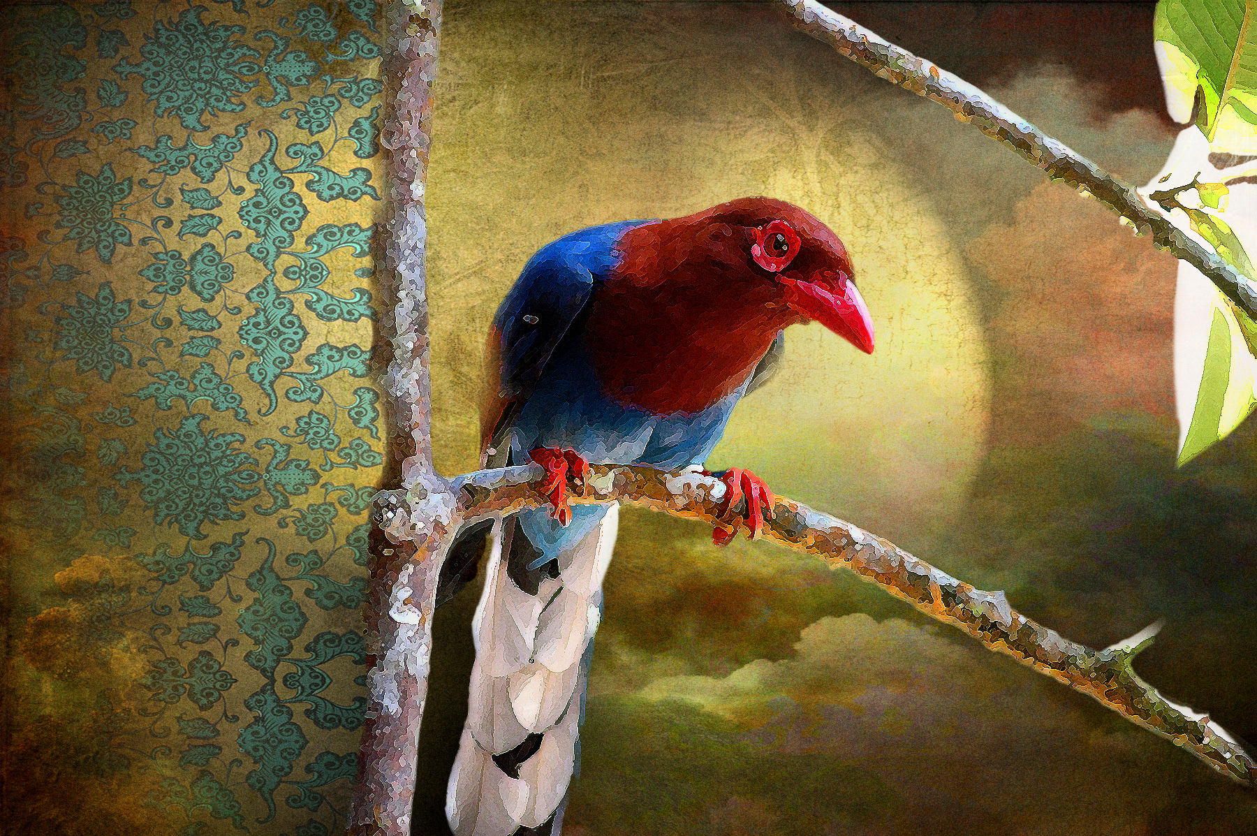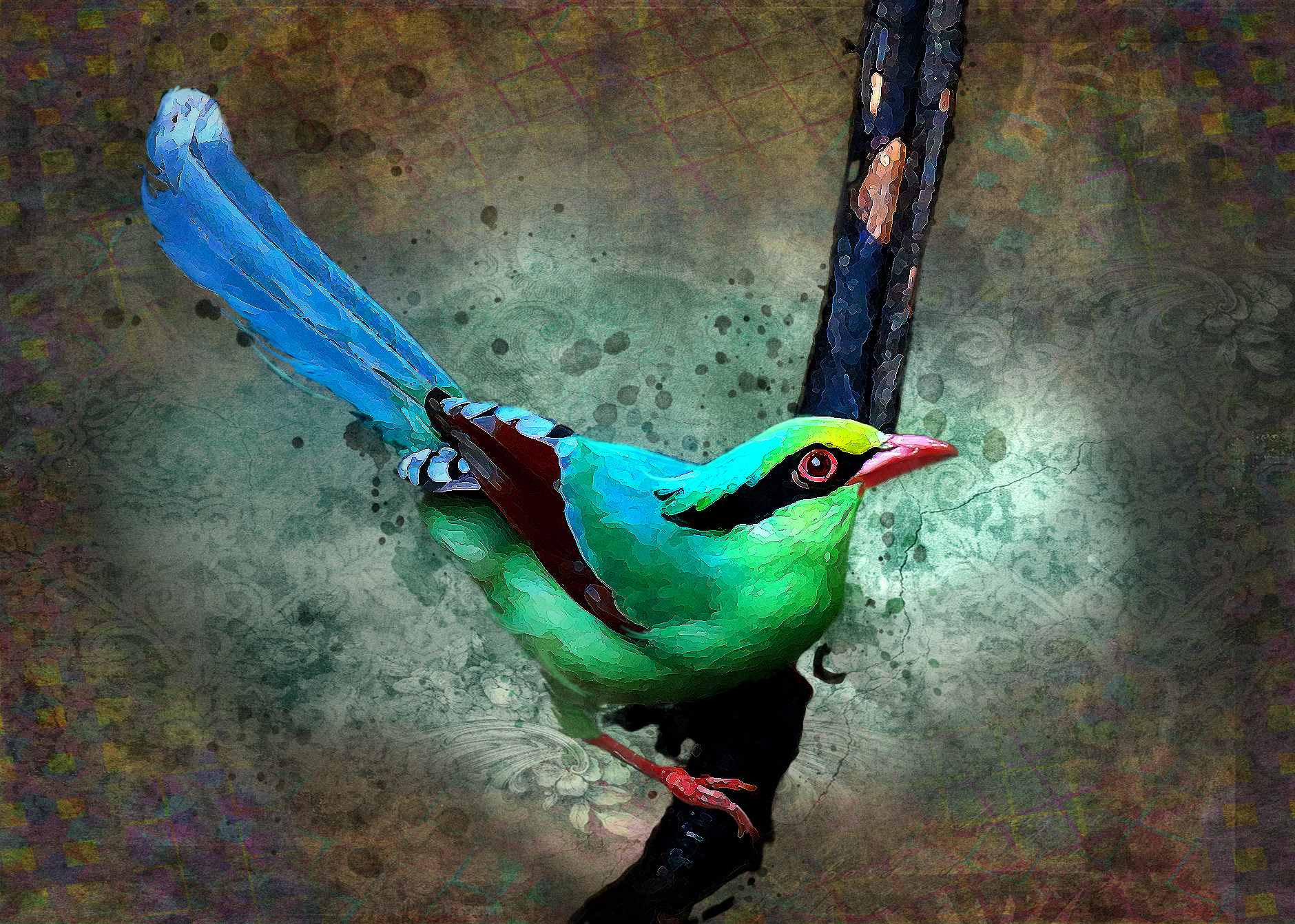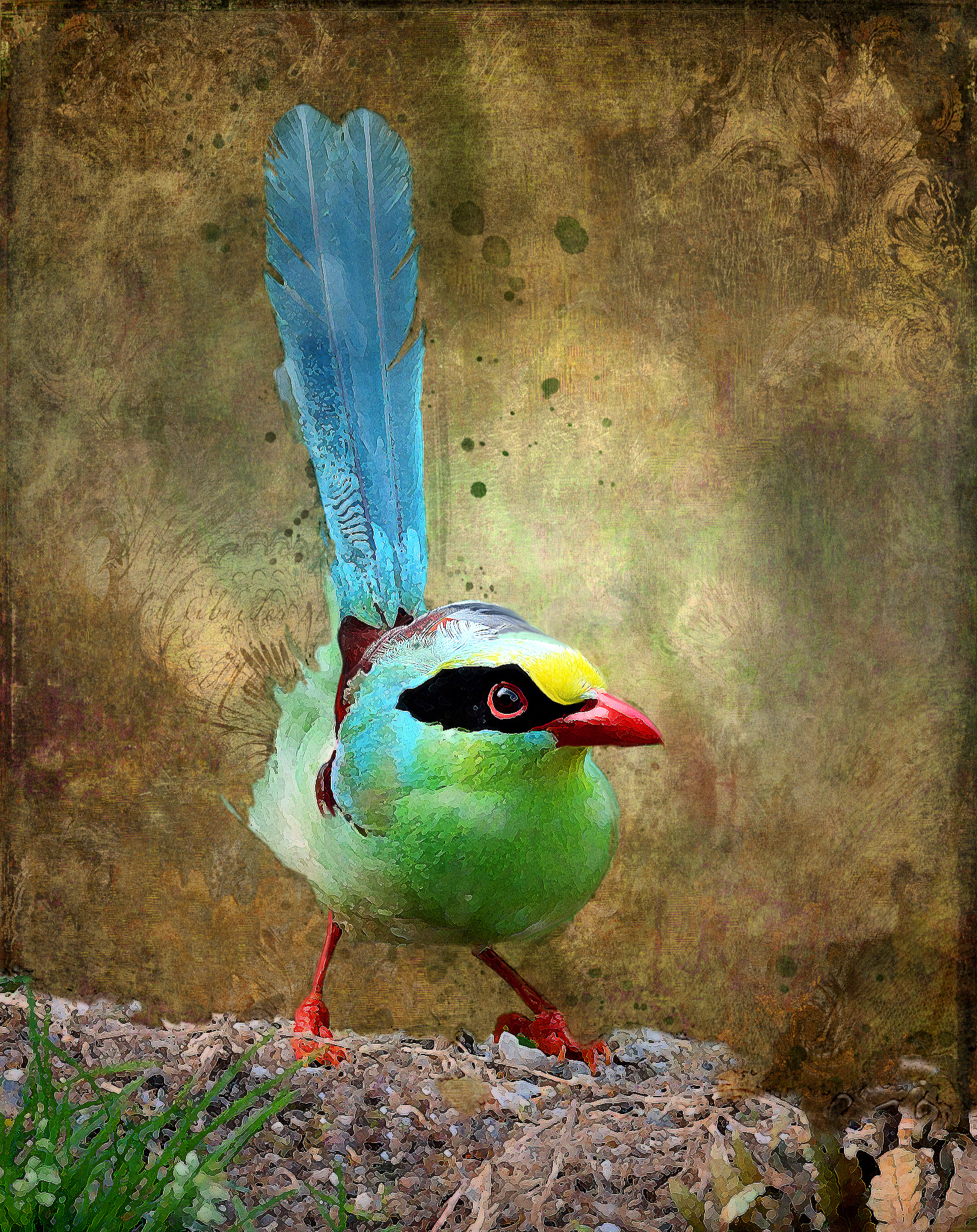 More magpies today. These two species are the Sri Lanka Blue magpie (blue and red) and the common Green one. The former is listed as a vulnerable species, whereas the latter is of least concern.
