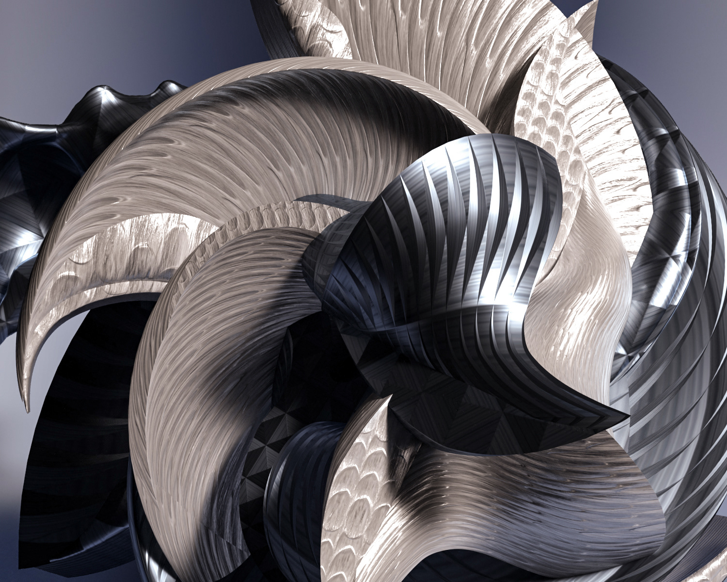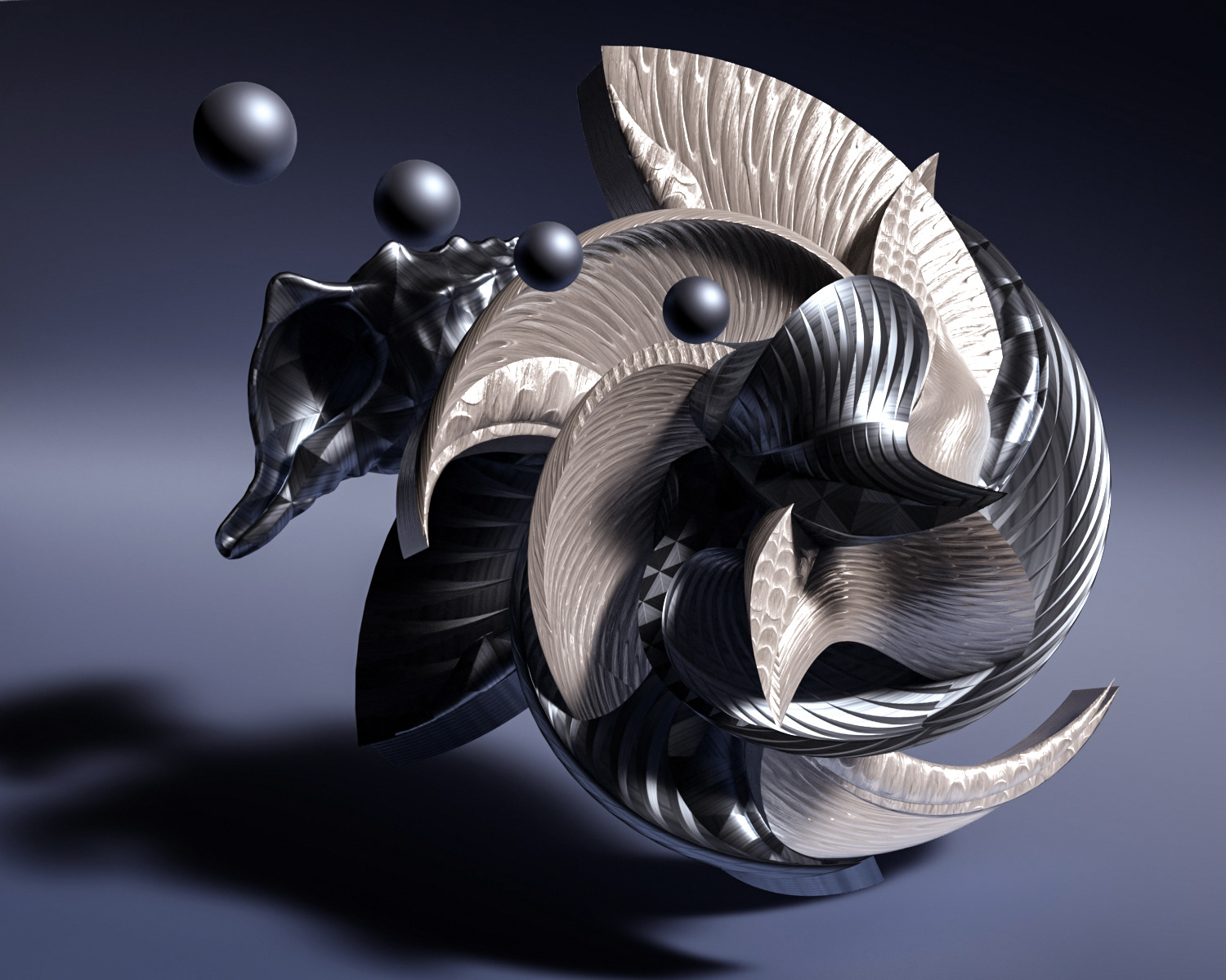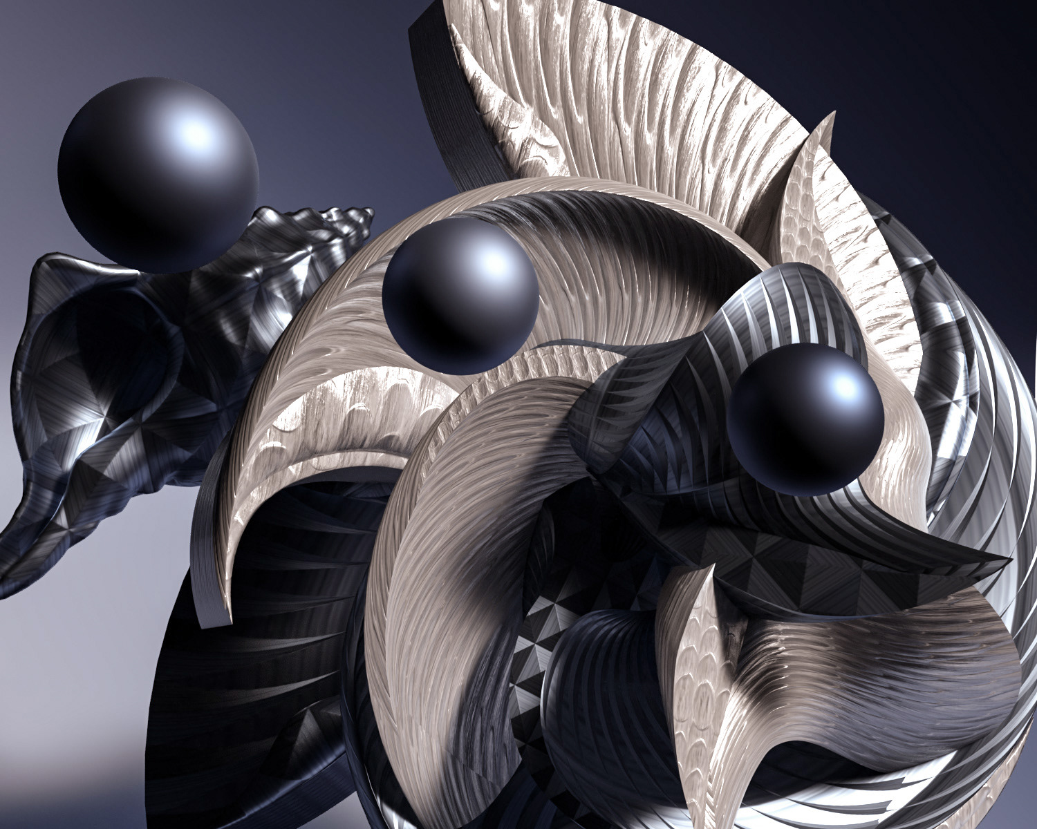 In "Nacre", I used the same shapes I created for the previous rendering, "Jewel", in shades of blue-gray and a slightly warm tinge to the lights.