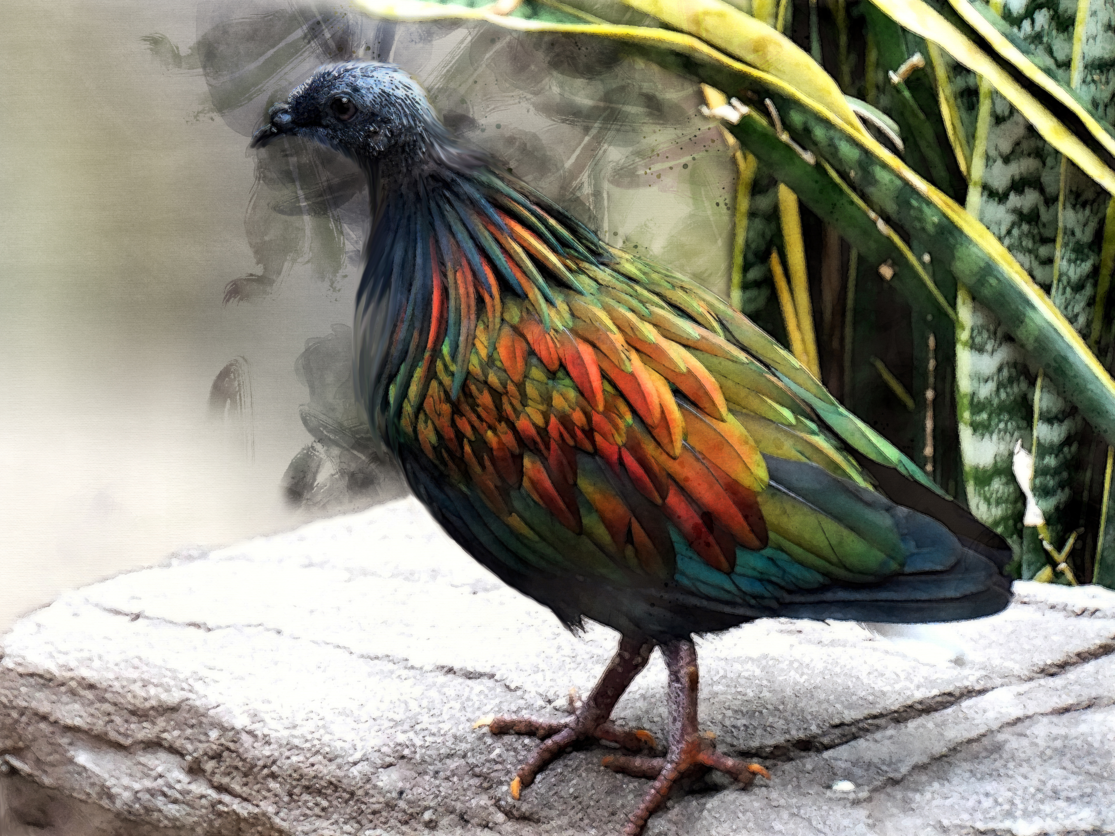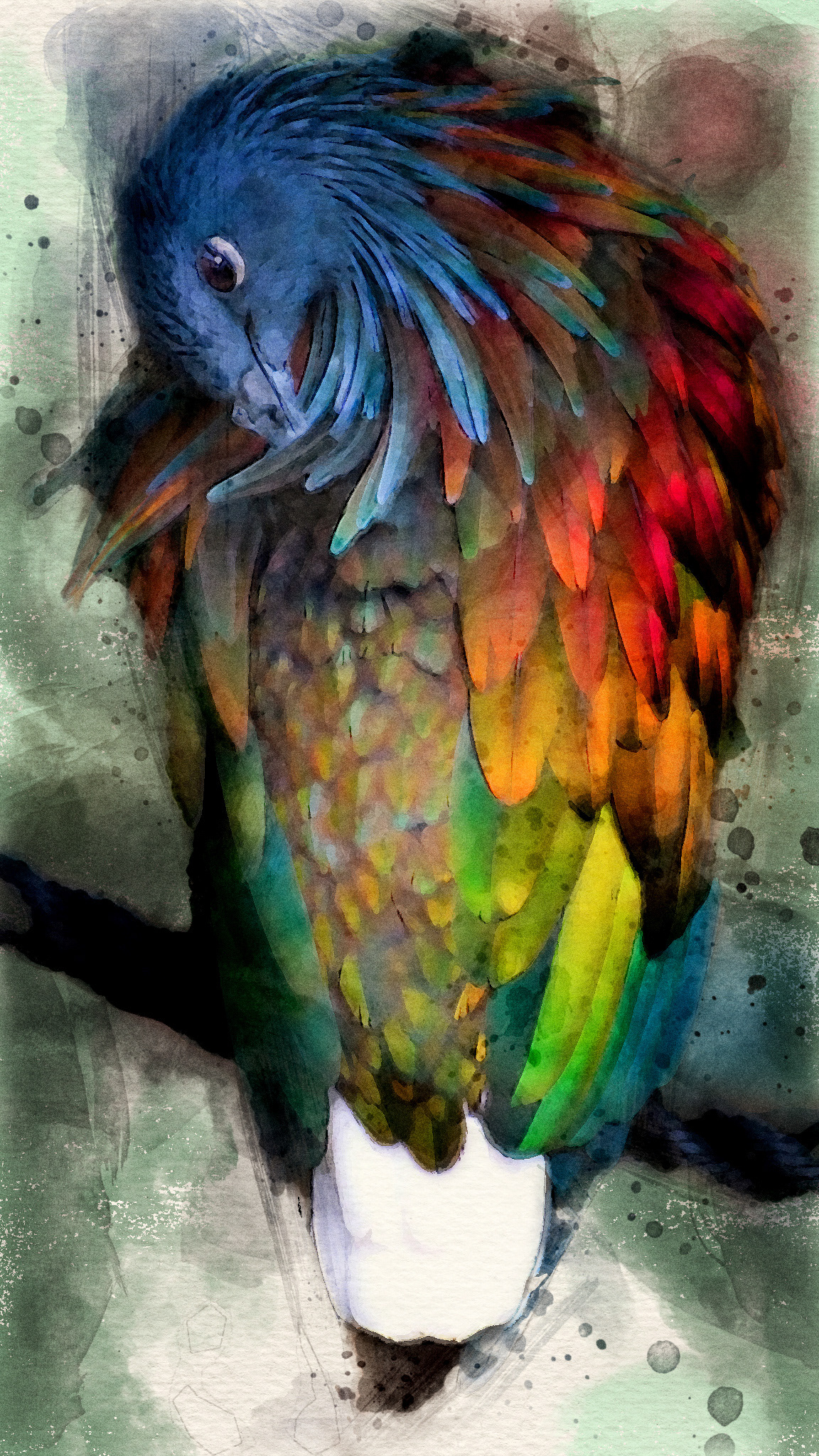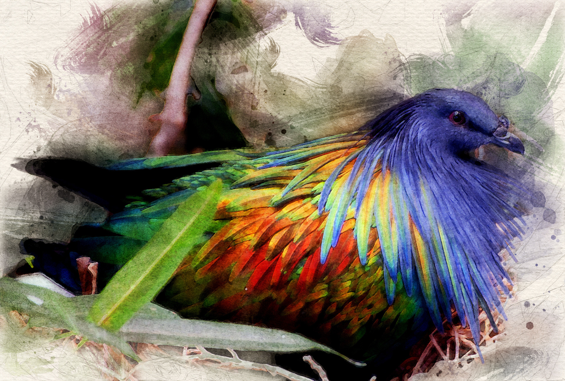 Continuing my collection of birds in watercolour rendered from photos of the real birds. Today we present you the Nicobar Pigeon, yet another bird threatened with extinction and extremely colourful and pretty. Enjoy...
