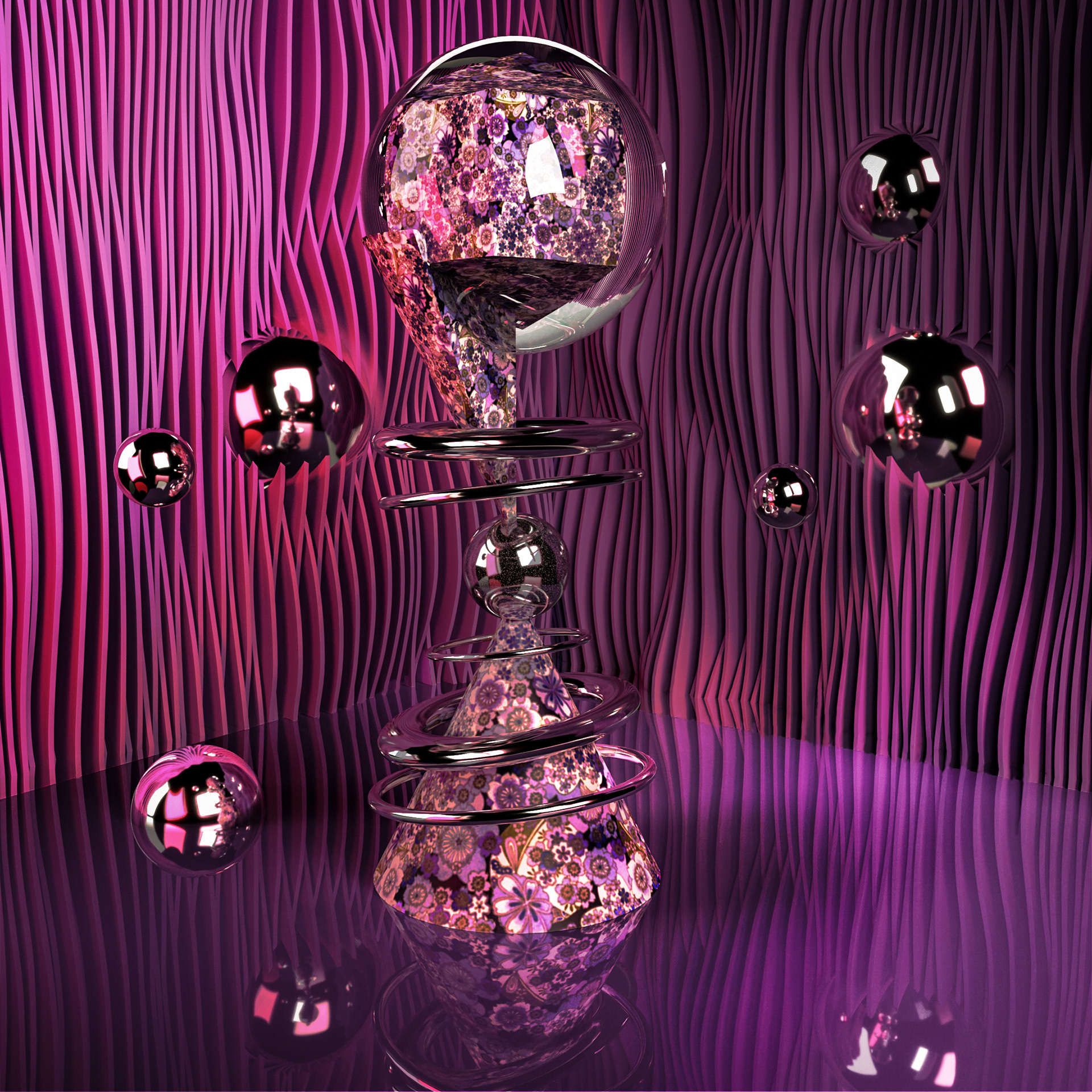 "Paperworks" is today's simple rendering. Chiyogami paper, metal and glass. Thanks for watching.