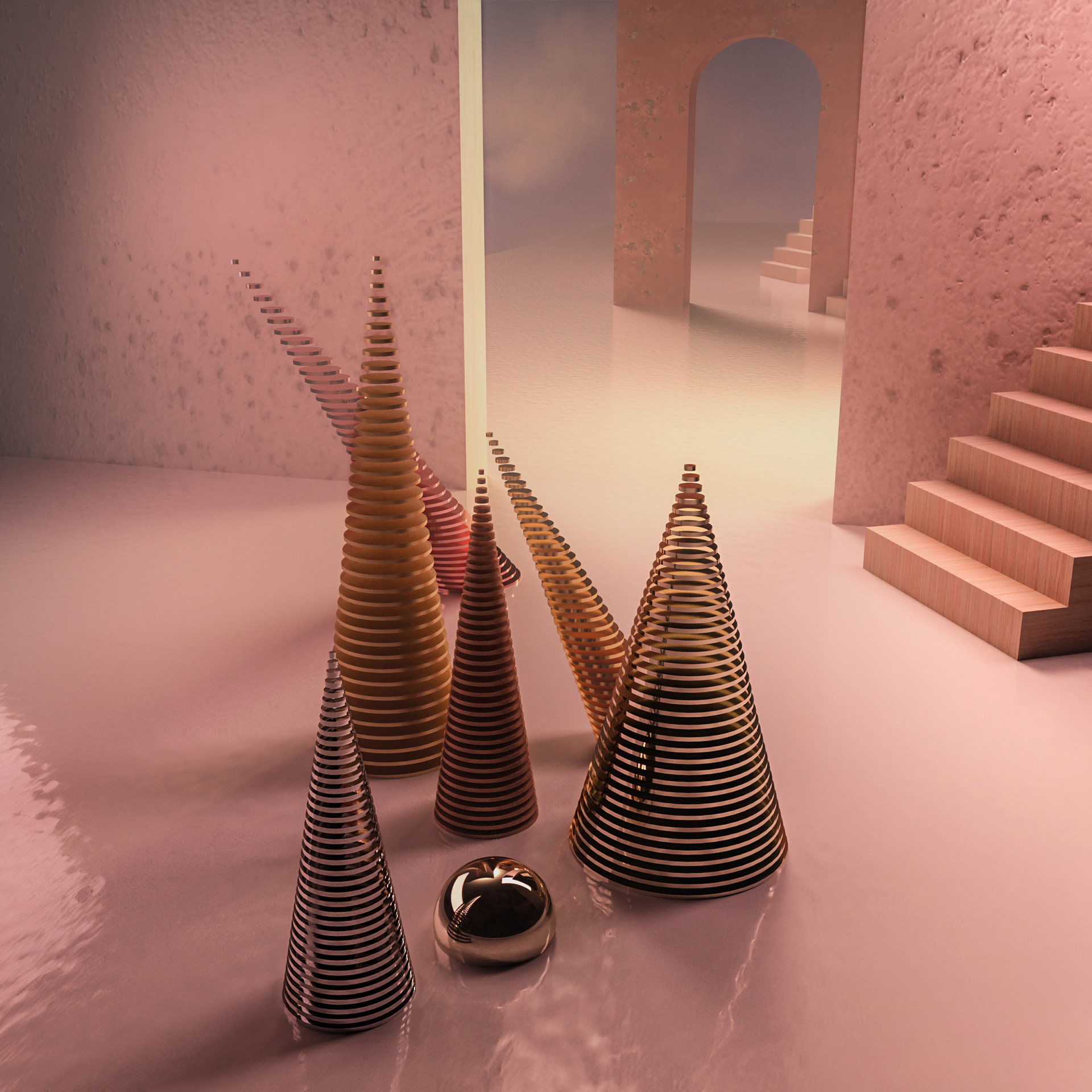 "Portals" is my rendering from yesterday, using DN parametric shapes, all built by me. The background is free from Adobe Stock. Another rendering I made just to relax and keep myself a bit sane in those hazy times.