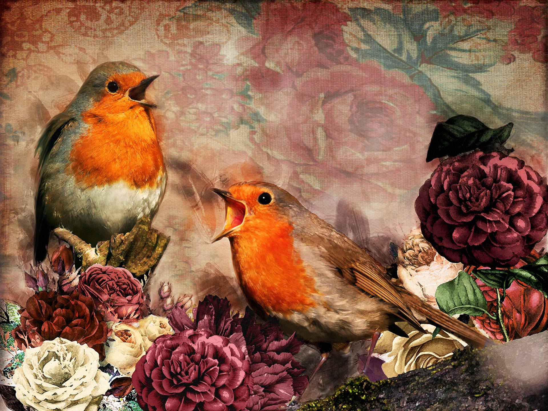 Here are my last robin plates in the series. One of them is presented with three variations, with and without backgrounds.